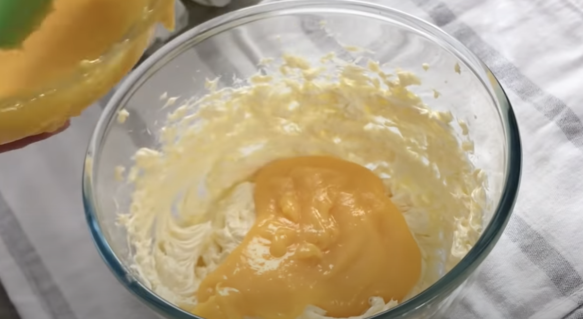 Ubij miękkie masło, a następnie dodaj do niego porcjami wcześniej ostudzoną mieszankę.