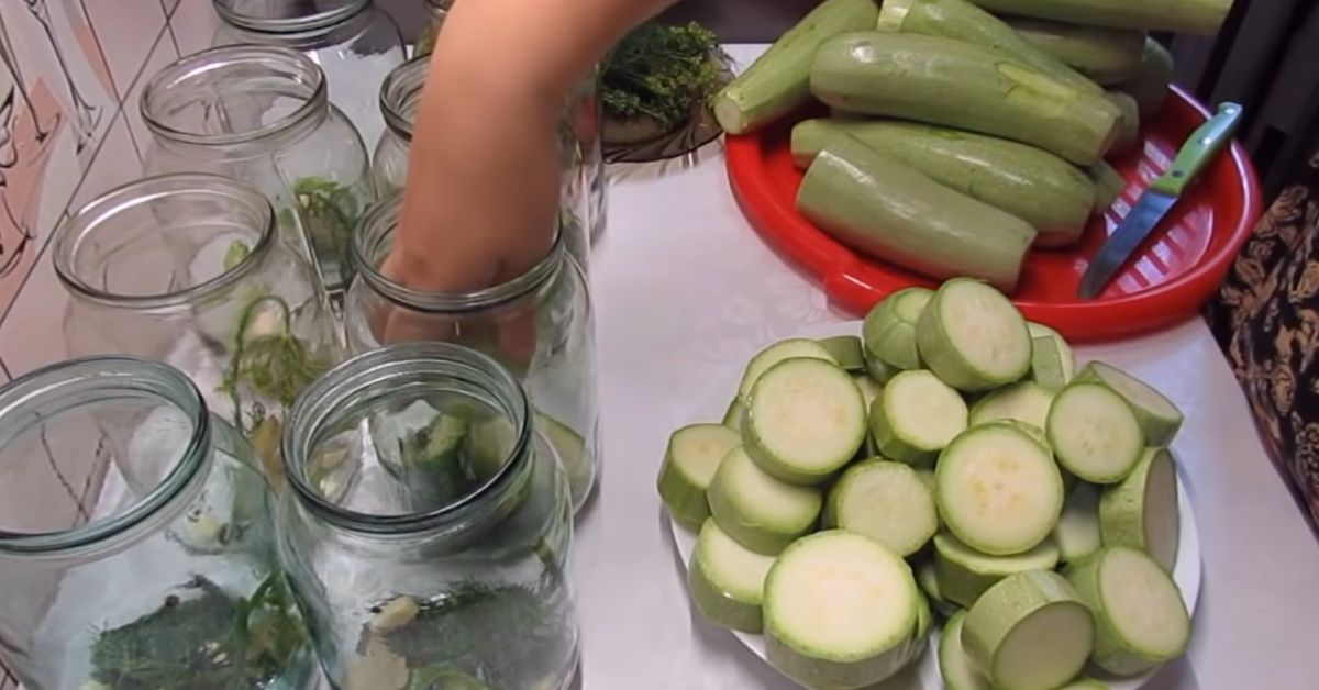 Najpierw najważniejsze, żeby cała cukinia się nie zepsuła i nie wylądowała w koszu – dokładnie umyj słoiki i wysterylizuj zakrętki. Na dnie każdego słoja umieść koper i parę ząbków czosnku (nie za dużo, inaczej wyjdzie zbyt ostre!).