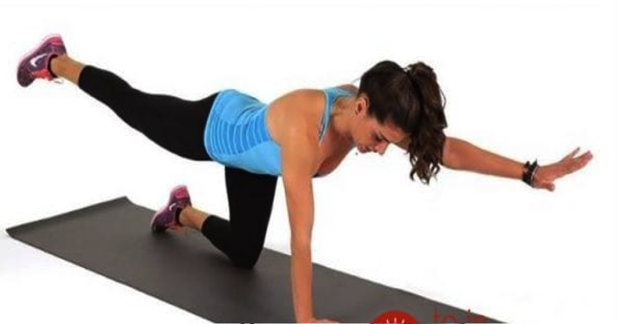 Połóż dłonie i kolana na matę. Wyciągnij prawą rękę i lewą nogę, wytrzymaj tak przez kilka sekund, starając się utrzymać równowagę. Wykonaj to samo ćwiczenie na drugą stronę ciała. Masz do zrobienia 15 powtórzeń na stronę.