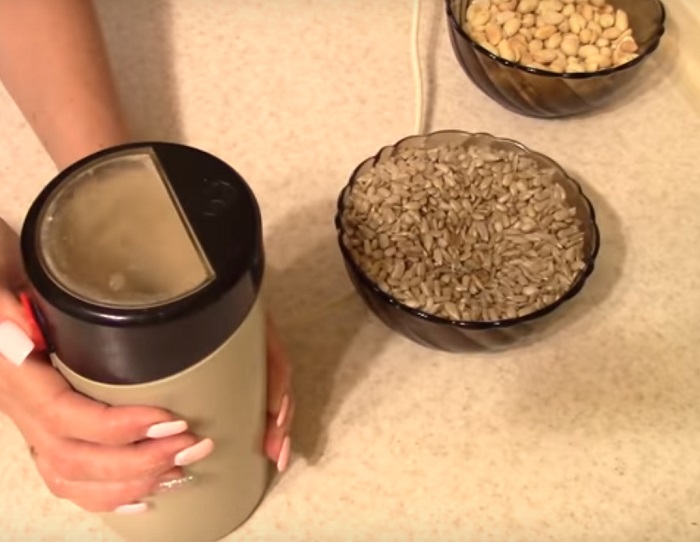 Za pomocą blendera czy też młynka do kawy zmielić pestki słonecznika, a następnie należy przełożyć je do miseczki. Potem trzeba zblendować jeszcze arachidowe orzeszki i połączyć ze zmielonym wcześniej słonecznikiem.