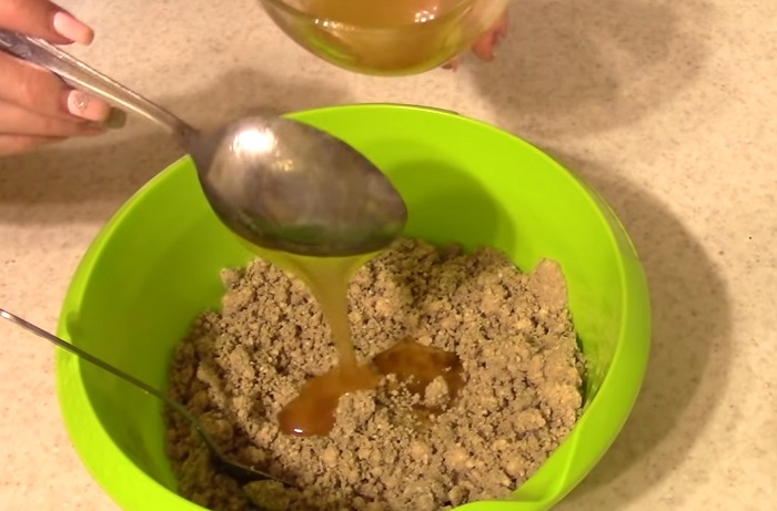 Do tych suchych składników dodać miód i całość dokładnie połączyć ze sobą.