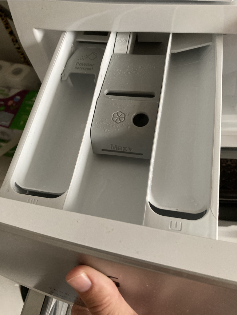Dozownik detergentu może pokryć się pleśnią. Może się to zdarzyć po umyciu urządzenia przez jakiś czas. Aby się jej pozbyć, wystarczy użyć kwasku cytrynowego. Wyrzuć dozownik. Użyj gąbki lub szczotki, aby namoczyć kwasek w wodzie. Powstanie biała pasta. Zostanie ona użyta do wyczyszczenia pojemnika. Spłucz ją.