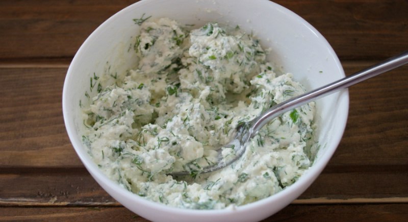 Kolacja – twaróg (200 g) z dodatkiem ziół, połową papryki i ogórkiem.