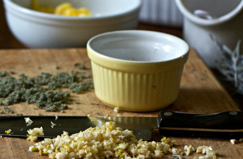 Do tak przygotowanej mieszanki należy dodać miękkie masło, szczyptę soli i pieprzu. Mięso należy natrzeć zarówno ze strony zewnętrznej, jak i wewnętrznej i odstawić do lodówki na 4 godziny. Po ich upływie wstawić do piekarnika i piec w temperaturze 220 stopni.