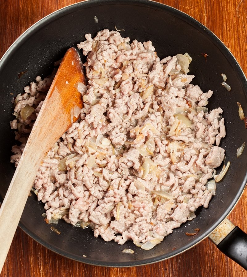 Nadzienie składa się z cebuli, mięsa i ziemniaków.