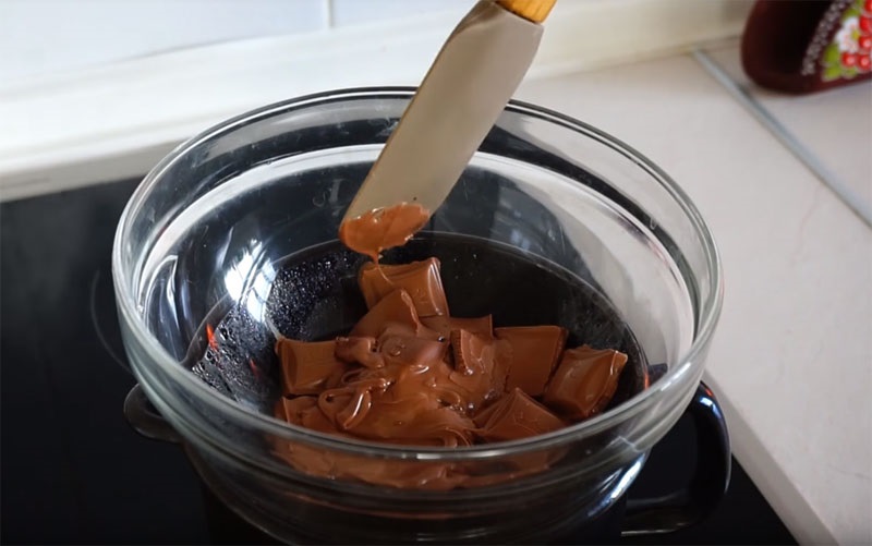 Teraz rozpuść mleczną czekoladę. Możesz zrobić to na dwa sposoby, w kąpieli wodnej lub w kuchence mikrofalowej.
