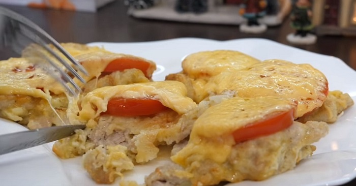 To wszystko, wieprzowina z serem i pomidorami jest gotowa. Smacznego!