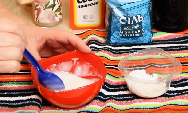 Należy wymieszać sól z sodą oczyszczoną. W przypadku, gdy używasz soli morskiej, wcześniej zmiel ją dokładnie w młynku do kawy. Następnie składniki wymieszaj z pianką lub środkiem od oczyszczania twarzy. Co istotne, uzyskana mieszanka musi mieć konsystencję śmietany.