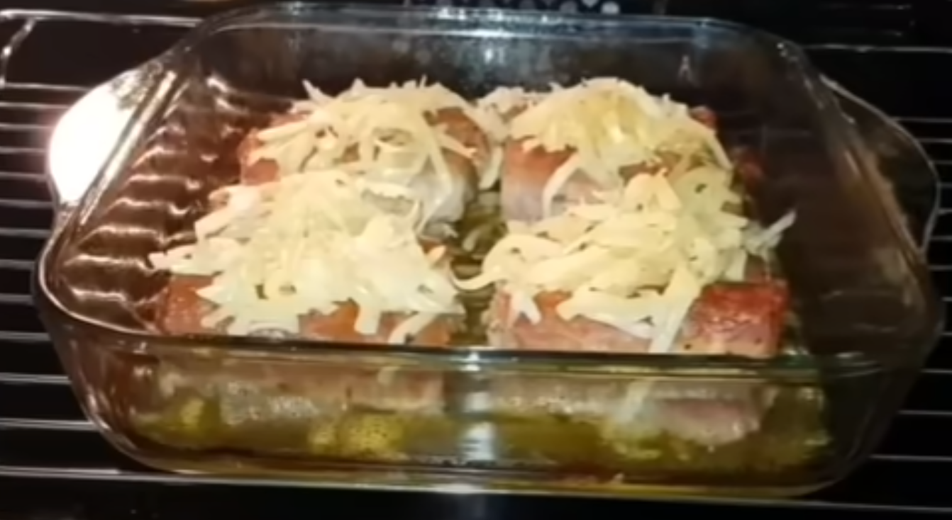 Roladki kładziemy do miski, w której będziemy je piec. Na górze kładziemy ser i tak przygotowane danie wkładamy do piekarnika na około 40 minut.