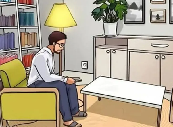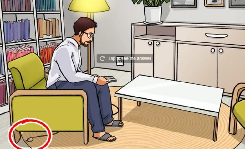 Na poniższym rysunku widzimy mężczyznę czytającego w pokoju. Na pierwszy rzut oka wszystko wydaje się być w porządku. Jednak jeśli przyjrzysz się uważnie, dostrzeżesz istotny błąd.