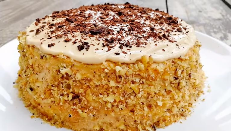 Pomiędzy warstwy kremu a ciasto z naleśnikami warto dołożyć śliwki oraz orzechy. Na samym końcu boki ciasta oraz wierzch należy posmarować pozostała ilością kremu. Idealnym wykończeniem będzie posypanie całej konstrukcji ciasta pozostałymi orzechami.