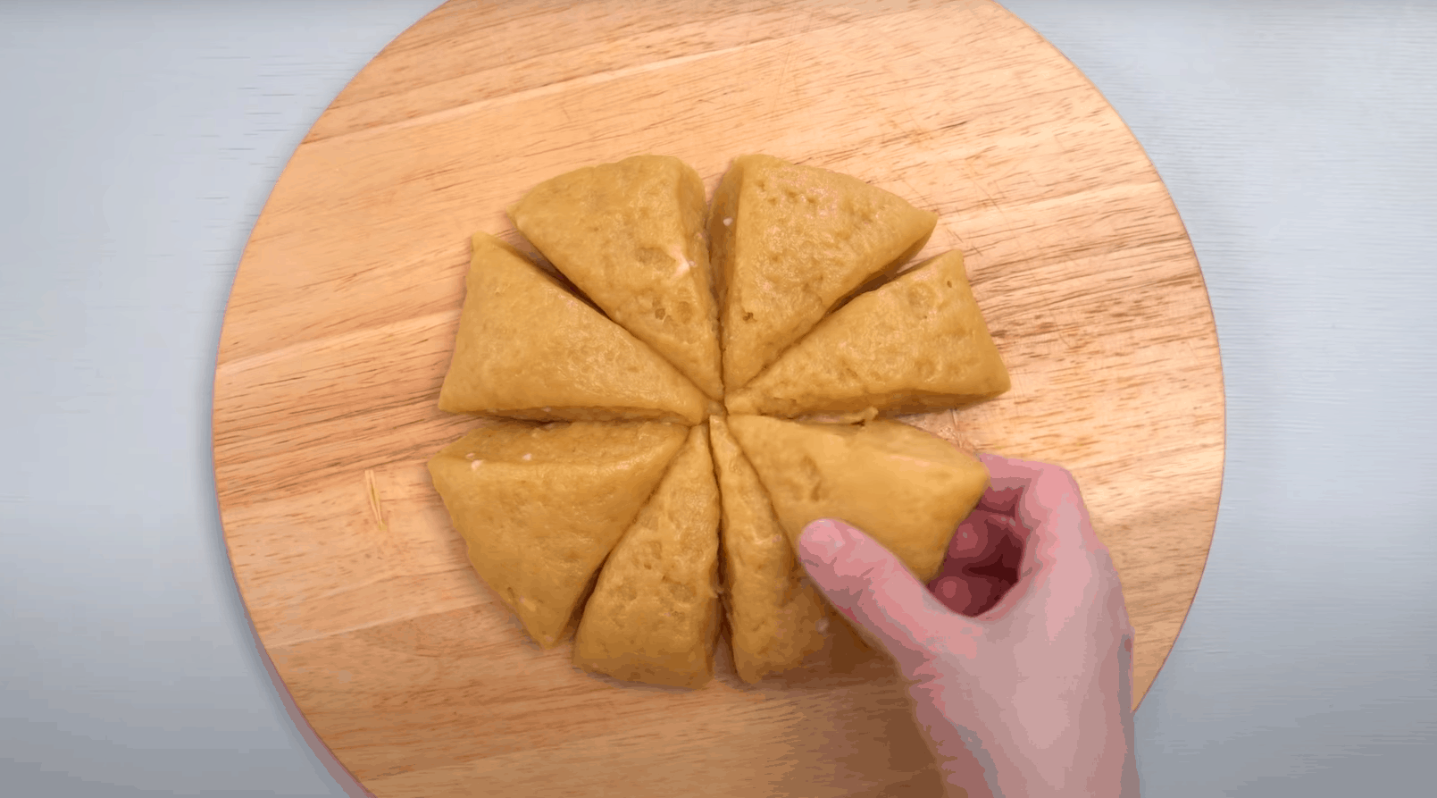 Pod koniec dodajemy sodę. Do pieniącej się masy wsypujemy trochę mąki i mieszamy. Odstawiamy całość do lekkiego przestygnięcia. Następnym etapem jest dodanie pozostałej mąki i zagniecenie ciasta na stolnicy lub desce. Ciasto dzielimy na 8 równych części.