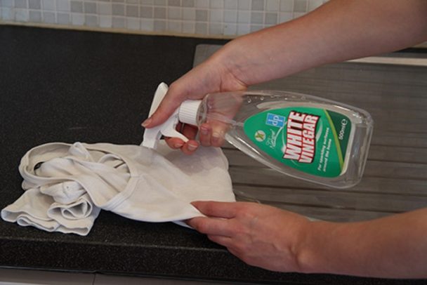 Ubrania bardzo często tracą pierwotną biel, przez co stają się szare i nudne. Aby pozbyć się tego problemu, wlej do bębna pralki około 1,5 szklanki octu. Możesz także wymoczyć ubrania w occie połączonym z wodą. Po praniu nie będzie żadnego śladu szarych odcieni.