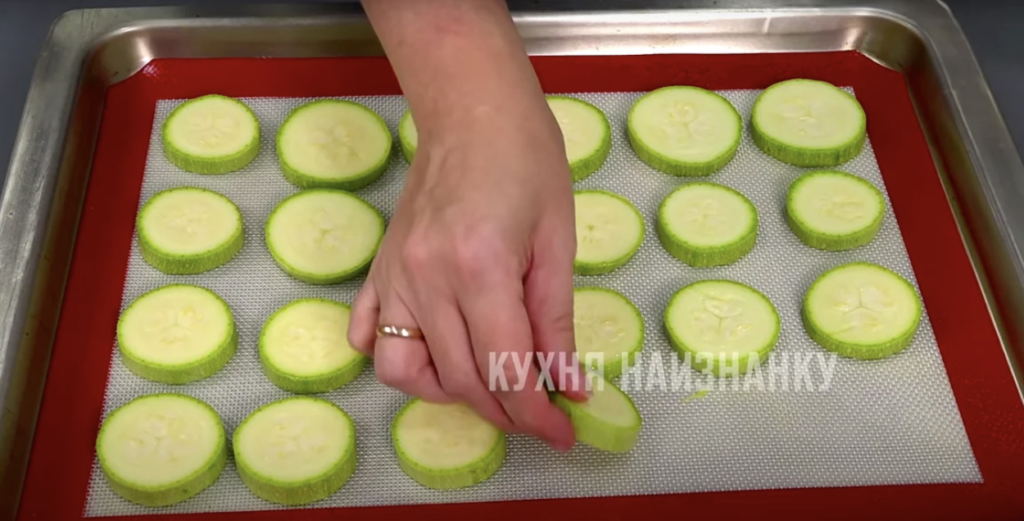 Rozłóż cukinię na blaszce wyłożonej papierem do pieczenia.