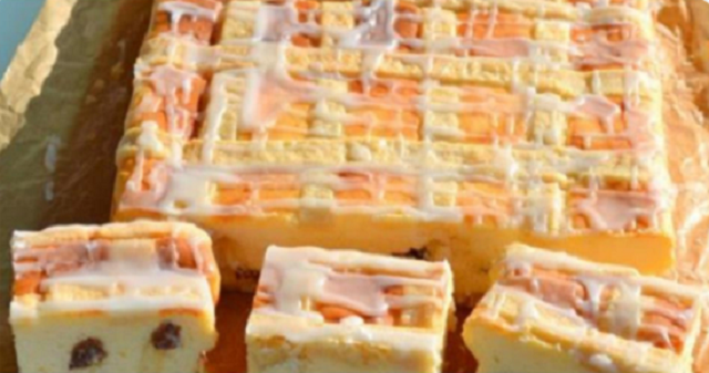 Wszystko ucieramy ,do uzyskania jednolitej masy do której na samym końcu dodajemy mąkę ziemniaczaną oraz rodzynki. Ubite osobno białka na sztywną pianę ,łączymy z naszą masą. Następnym krokiem jest rozwałkowanie pozostałej części ciasta ,które kroimy w paski z których ułożymy kratkę na wierzchu (zaawansowani piekarze mogą wykorzystać swoje umiejętności i przedstawić wizualnie swój sernik jak chcą!) .