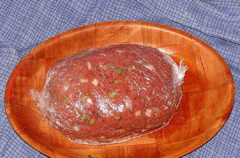 Tak przygotowany farsz uformuj w kulę, zawiń w folię spożywczą i umieść w lodówce na cały dzień. Mięso powinno być dobrze schłodzone i przejść smakiem.
