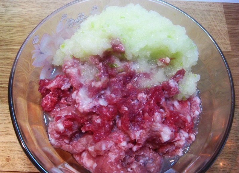 Cebulę i czosnek drobno zetrzyj i dodaj na drugi dzień do mięsa. Dopraw solą i pieprzem. Całość dokładnie wymieszaj i umieść w lodówce na 2 godziny, aby przeszła aromatem czosnku i cebuli.