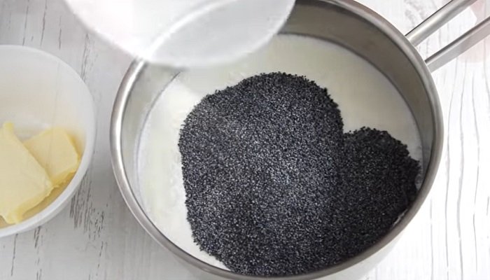W niewielkim garnku należy połączyć wcześniej schłodzone mleko, mak, masło i cukier. Wszystkie składniki koniecznie trzeba dokładnie wymieszać.