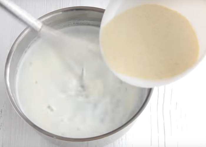 W kolejnym etapie należy połączyć obie masy, dokładnie wszystko mieszając blenderem.