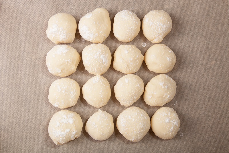 Należy wymieszać twarożek, cukier oraz kaszę mannę. Jeżeli masa jest zbyt rzadka, można dodać kaszy manny. Jeżeli zbyt sucha i się rozlatuje – można ewentualnie rozrzedzić ją mlekiem, kefirem lub nawet wodą. Ugniecione ciasto powinno być dosyć lepkie i delikatne.