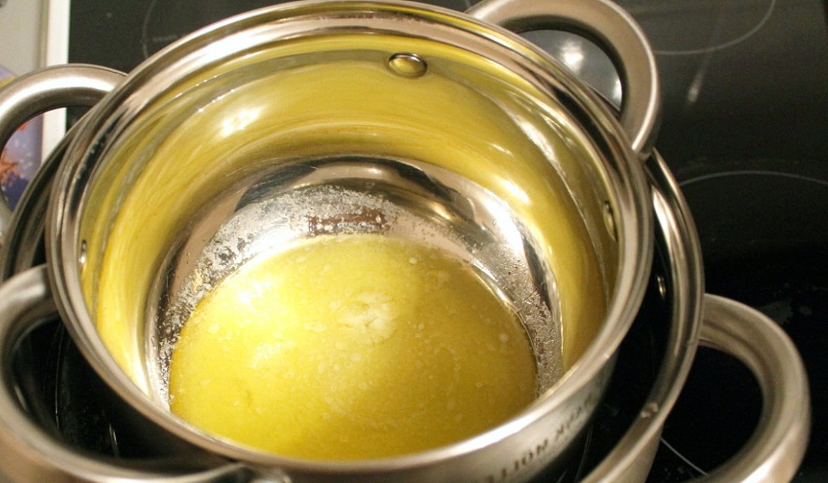 W naczyniu umieszczamy masło, a następnie rozpuszczamy je na najmniejszej mocy palnika. Do rozpuszczonego i lekko już wystudzonego masła dodajemy miód, całość mieszamy tak długo, aż te dwa składniki połączą się, a ich konsystencja będzie jednolita.