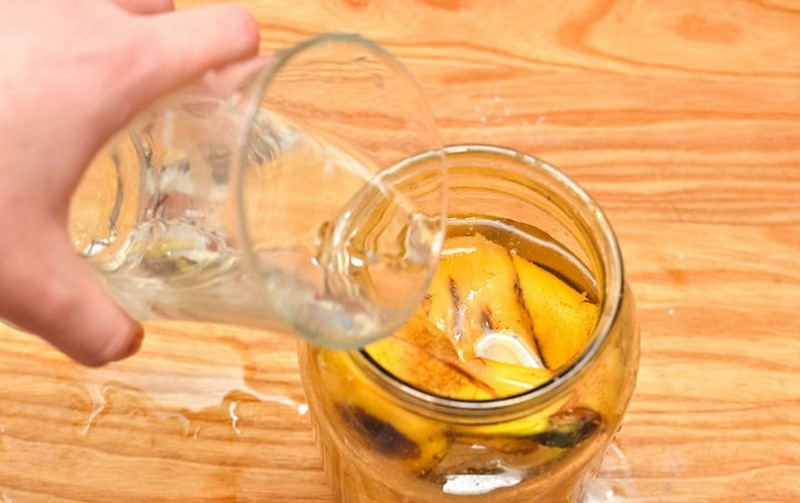 Skórkę od banana suszymy na słońcu do momentu, gdy stanie się twarda i krucha. Następnie kroimy ją na niewielkie kawałki lub drobno kruszymy. Jedna łyżeczka zaparzona w szklance wrzątku, to po ostygnięciu naprawdę świetny nawóz!