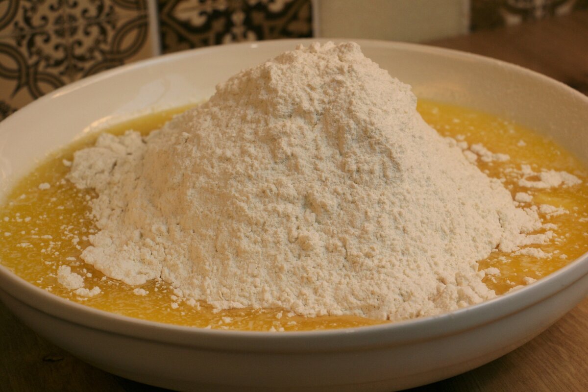 W drugiej misce wymieszaj przesianą mąkę z drożdżami (lub rozczynem z nich). Składniki suche wsyp do składników mokrych. Tutaj już odstaw mikser i użyj swoich rąk – tak najlepiej wyrobisz ciasto.