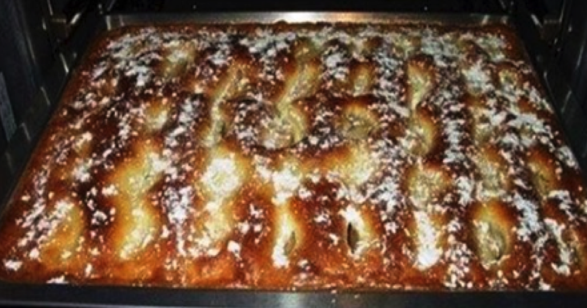 Po tym czasie wyjmij ciasto z piekarnika i zalej je przygotowaną masą, włóż z powrotem do pieczenia na kolejne 40 – 50 minut. Schłodź gotowe ciasto z jabłkami i posyp cukrem pudrem. Smacznego!