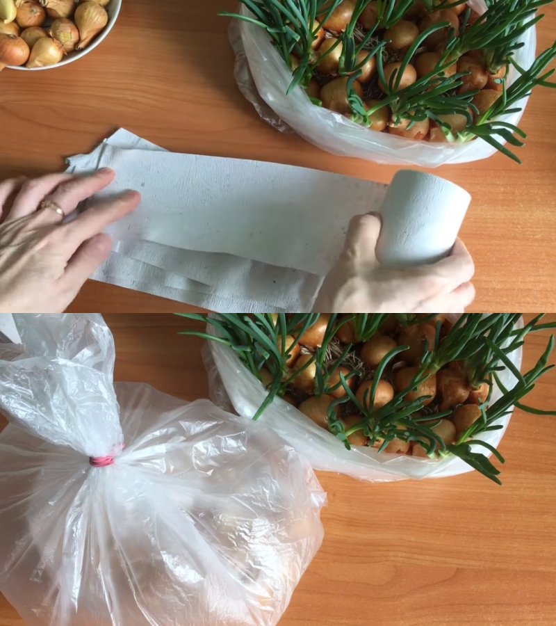 Ten prosty trik sprawi, że szczypiorek wykiełkuje 10 dni wcześniej! Po tym czasie należy osuszyć wszystkie cebule, np. serwetką oraz ułożyć je blisko siebie w plastikowej reklamówce. Nie zapominaj o tym, że mokry wypełniacz w torbie powinien mieć grubość co najmniej 2 cm.