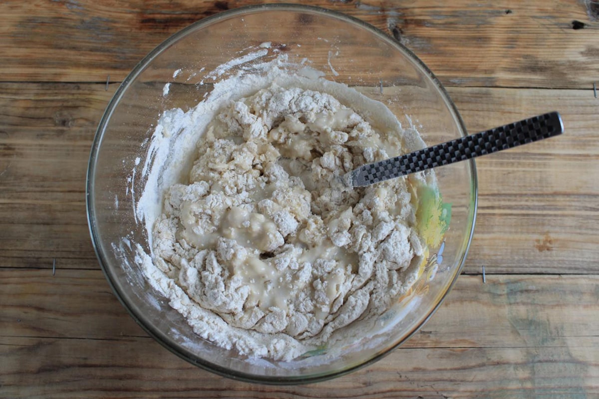 Zacznij dodawać mąkę małymi porcjami, jednocześnie mieszając. Zagnieć ciasto. Umieść ciasto drożdżowe w plastikowej torbie i wstaw do lodówki na 2h.