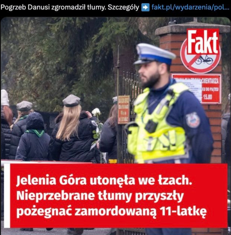 Tragiczna śmierć 11‑letniej Danusi wstrząsnęła Jelenią Górą. Pogrzeb dziewczynki zgromadził ogromną liczbę mieszkańców, którzy przyszli oddać hołd i wesprzeć rodzinę w tym trudnym czasie. Uroczystość przebiegała w atmosferze głębokiego wzruszenia i zadumy, a lokalna wspólnota okazała solidarność.