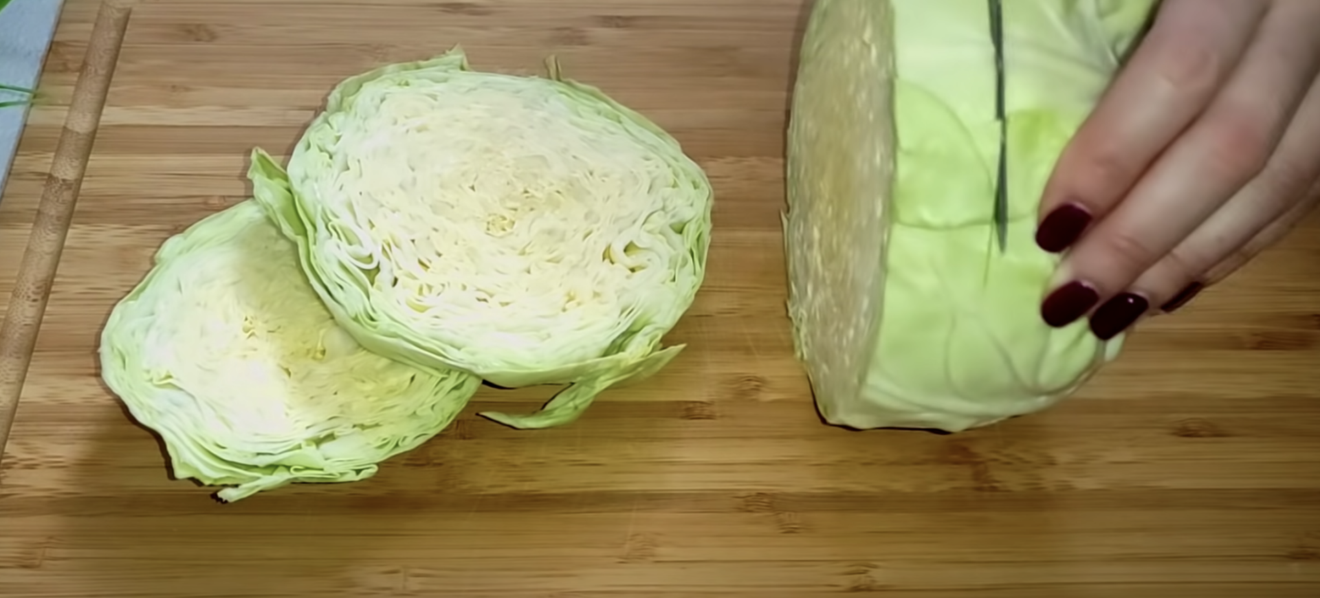 Kapustę podziel na plastry o grubości około 2 cm.
