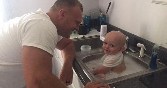 Mężczyźni zabrali dziecko na posterunek i zafundowali mu kąpiel… w zlewie, a zdjęcia z tego wydarzenia wręcz rozczuliły internautów.