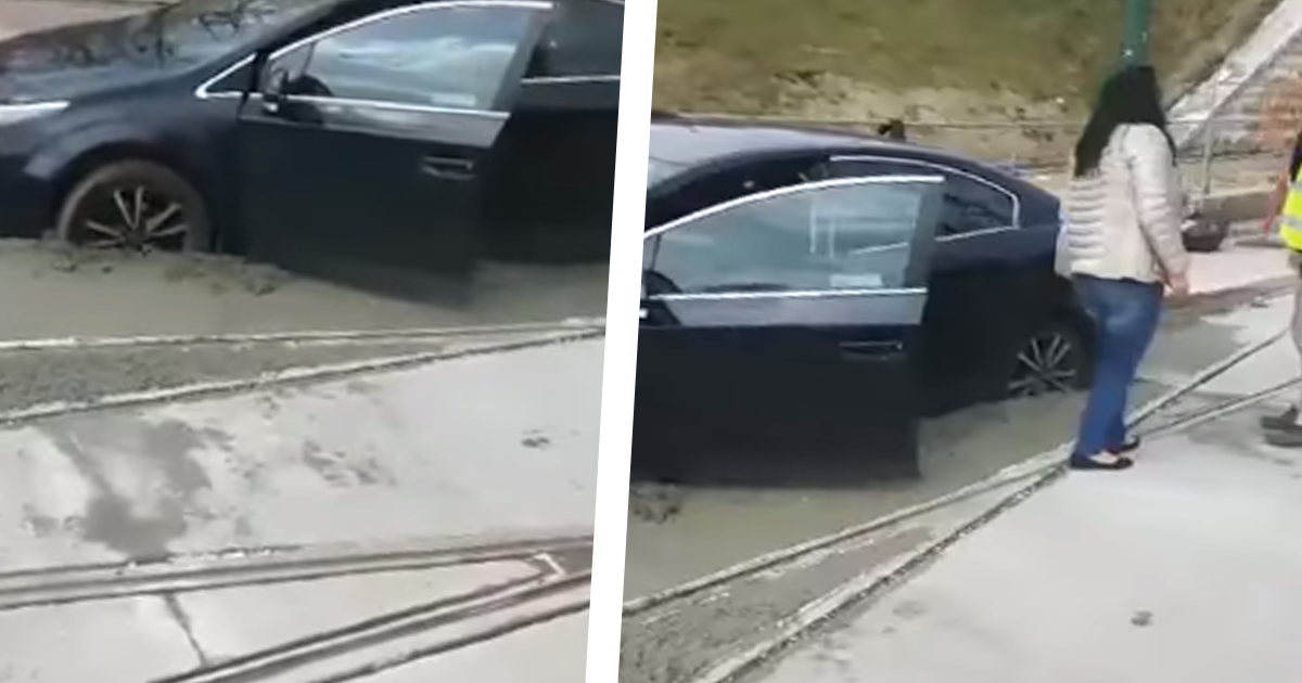 W Sosnowcu kobieta wjechała na świeżo wylany beton. Film jest hitem w sieci